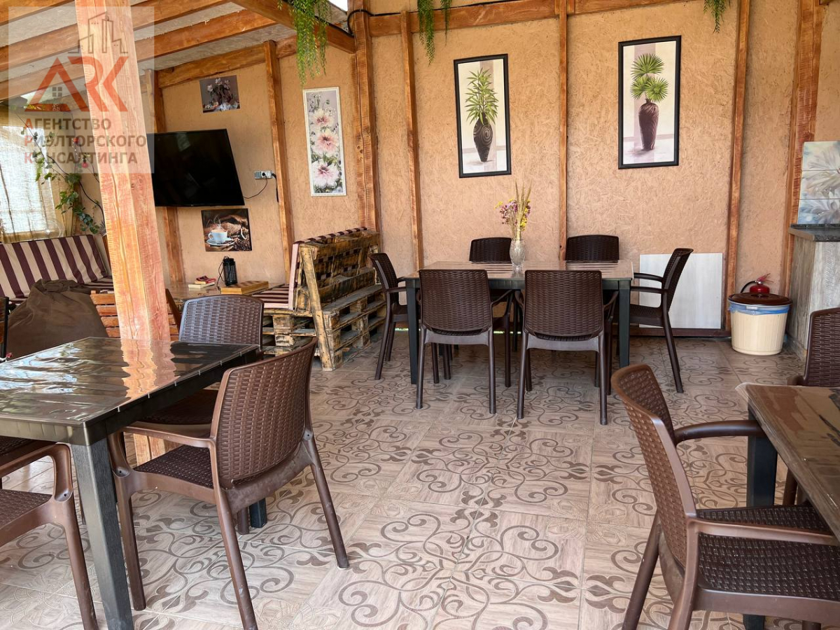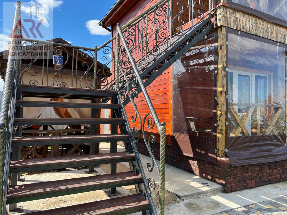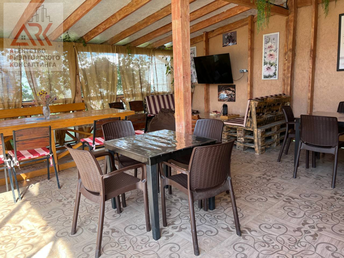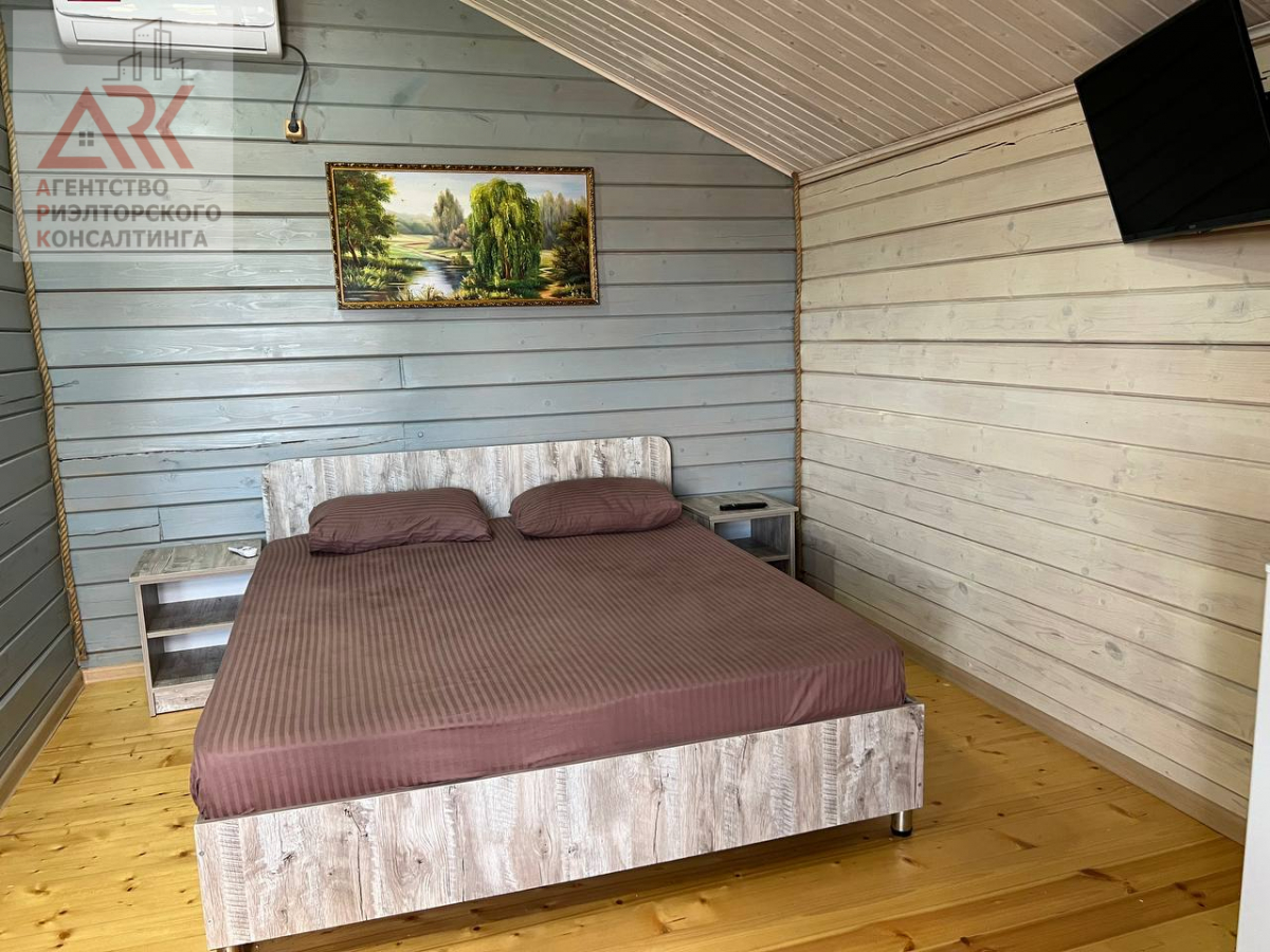 2 этажа отделанные вечным деревом лиственницей , которая никогда не гниет. На второй этаж ведет стильная, кованная лестница, номера покрашены экологической краской на водной основе. На территории также построен дом для круглогодичного проживания для хозяев, состоит из: кухни-столовой, 2 спальни, и санузлом 4 кв. м, все обставлено современной мебелью и техникой.