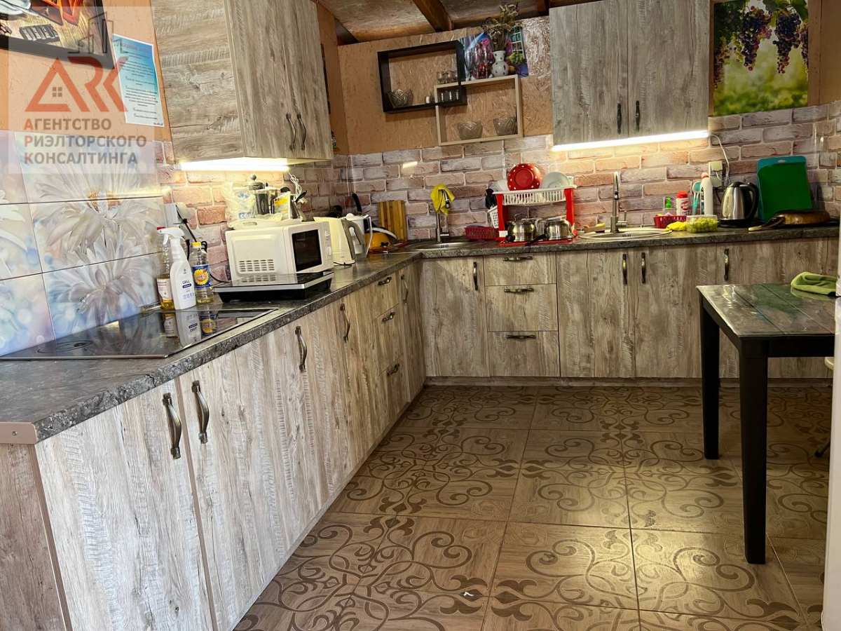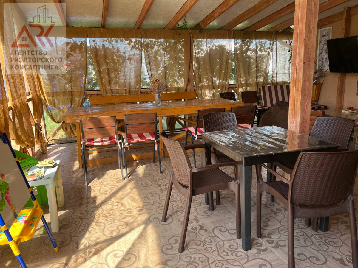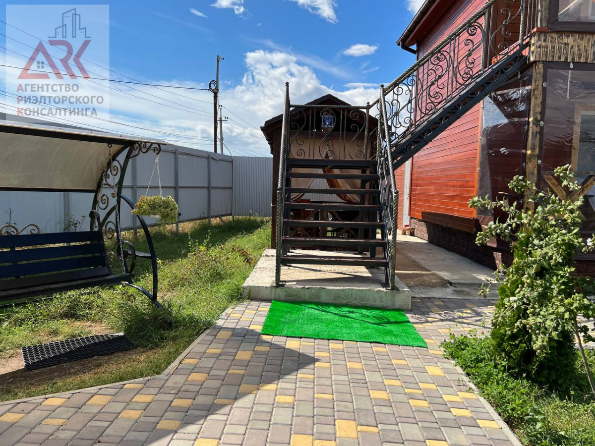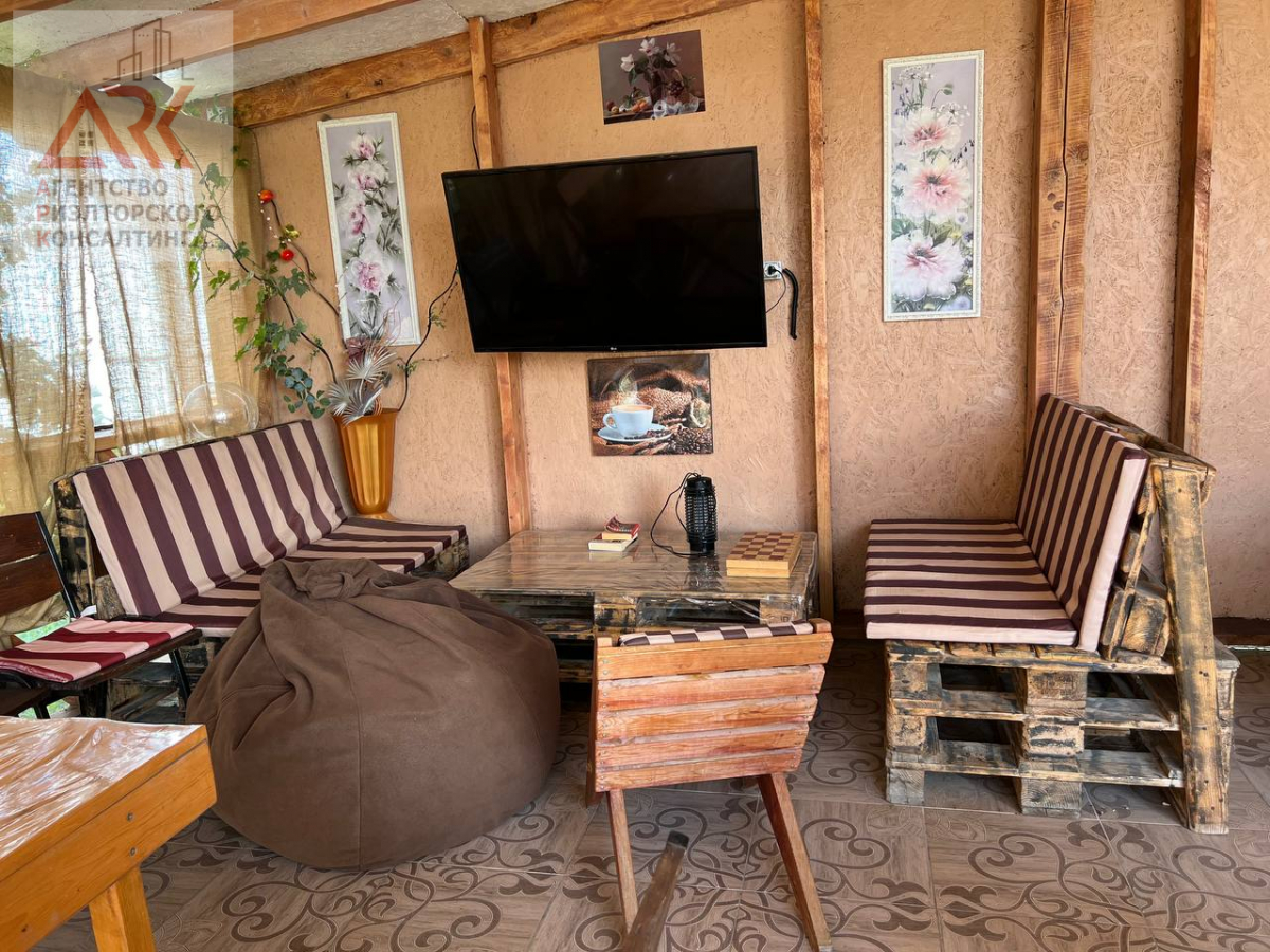 2 этажа отделанные вечным деревом лиственницей , которая никогда не гниет. На второй этаж ведет стильная, кованная лестница, номера покрашены экологической краской на водной основе. На территории также построен дом для круглогодичного проживания для хозяев, состоит из: кухни-столовой, 2 спальни, и санузлом 4 кв. м, все обставлено современной мебелью и техникой.
