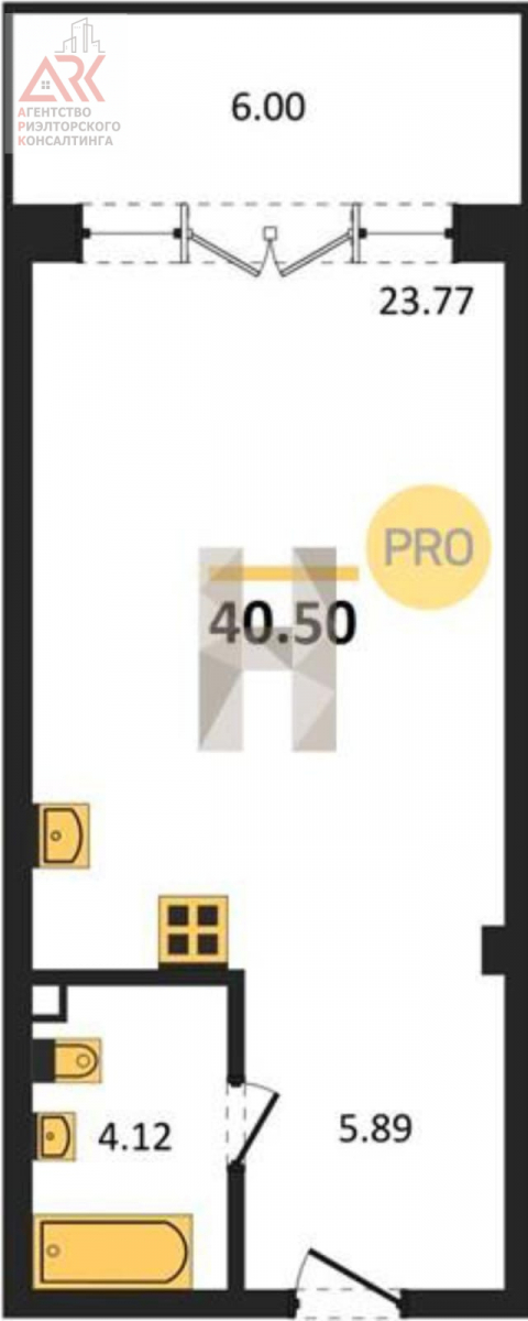 Новостройка Студия Общая площадь: 40.5 m² Жилая площадь: 23.8 m² Кухня: 23.8 m² Этаж: 1 из 4 Ремонт: косметический Балкон: 1
