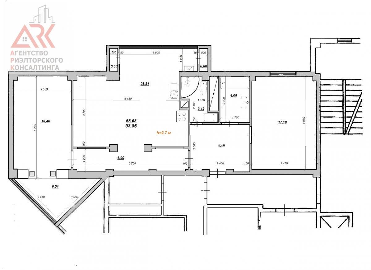 В стоимость квартиры входит вся сантехника, которая находится в санузлах и два кондиционера, двухконтурный газовый котел, газовая плита, мойка для кухни.