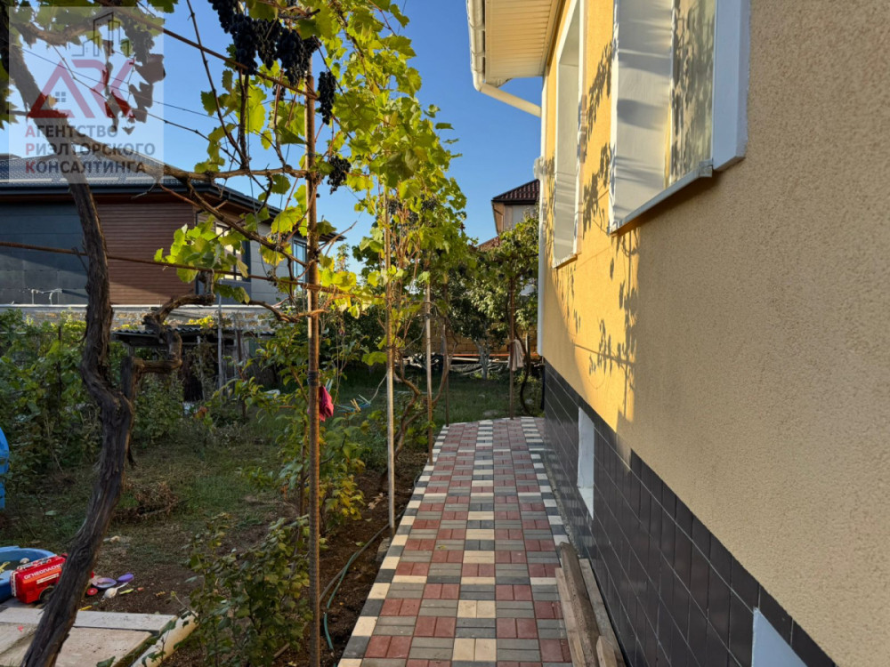 На территории участка высажены плодовые деревья, виноград, цветы.