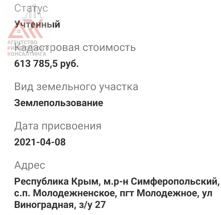 Продается земельный участок пл. 5,23 сот по ул. Виноградная в п. Молодежное (Давыдовка) Симферопольского района.