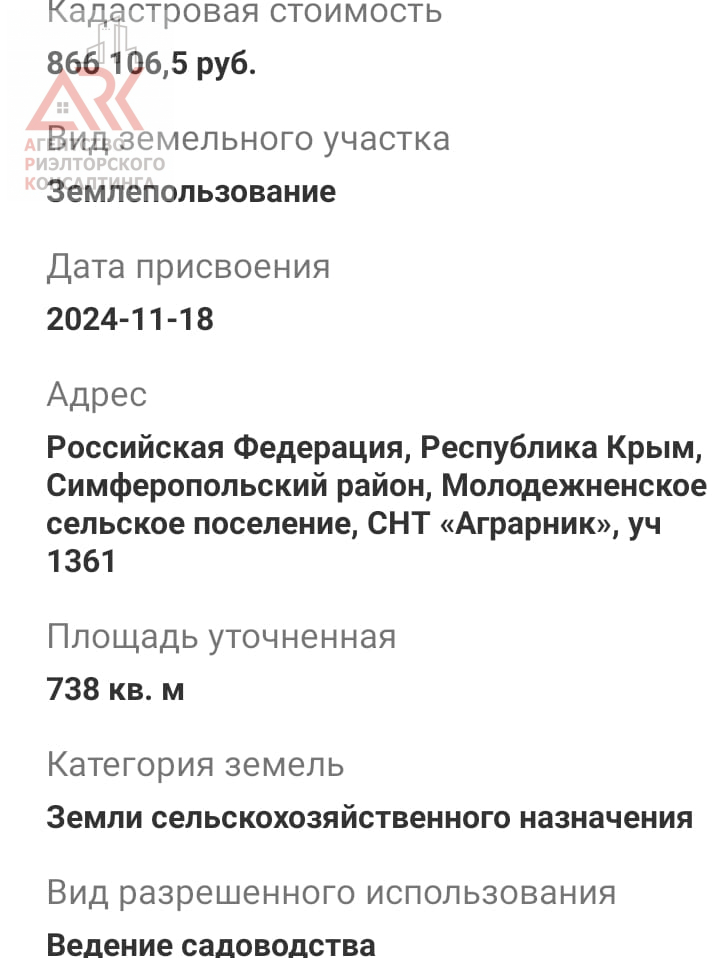 Дорогие покупатели, представляем вашему вниманию уникальное предложение — участок в живописном районе Республики Крым, в пгт. Молодежное, на территории Аграрник СНТ. Этот участок — настоящая находка для тех, кто мечтает о собственном рае на земле! 🏞️