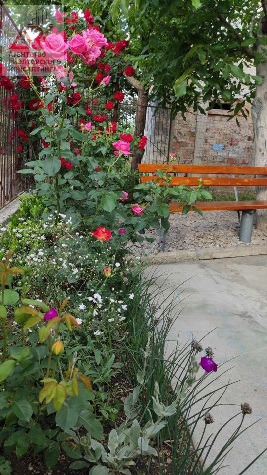 Участок - 8,2 сотки, ухоженный. На участке : абрикосы, персики яблони, груши, вишня, черешни, слива, айва, инжир, кизил, гранат, зизифус, смородина красная и чёрная, клубника, большой виноградник, цветочные клумбы, декоративные растения. Зона отдыха с мягким диваном и мангалом.